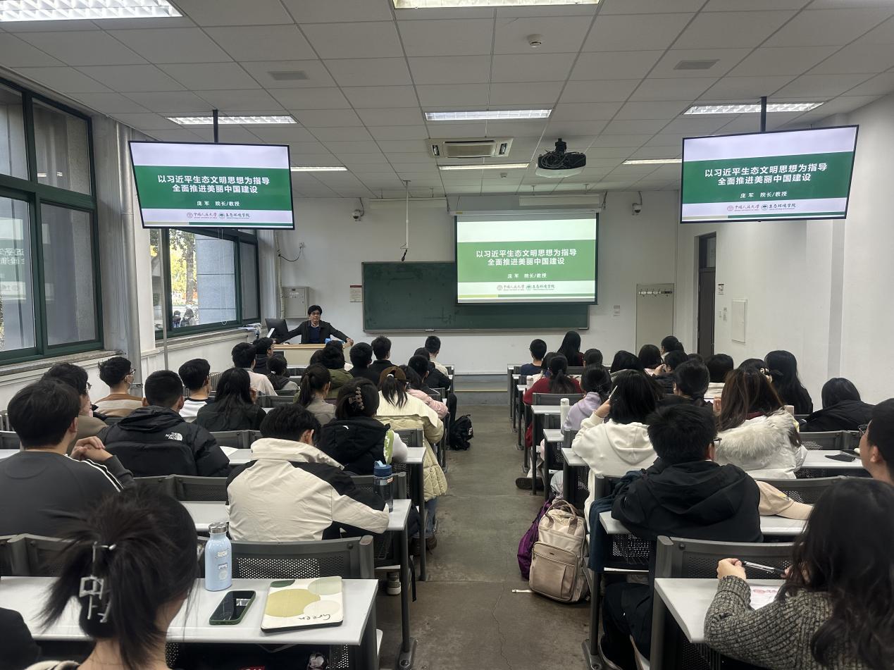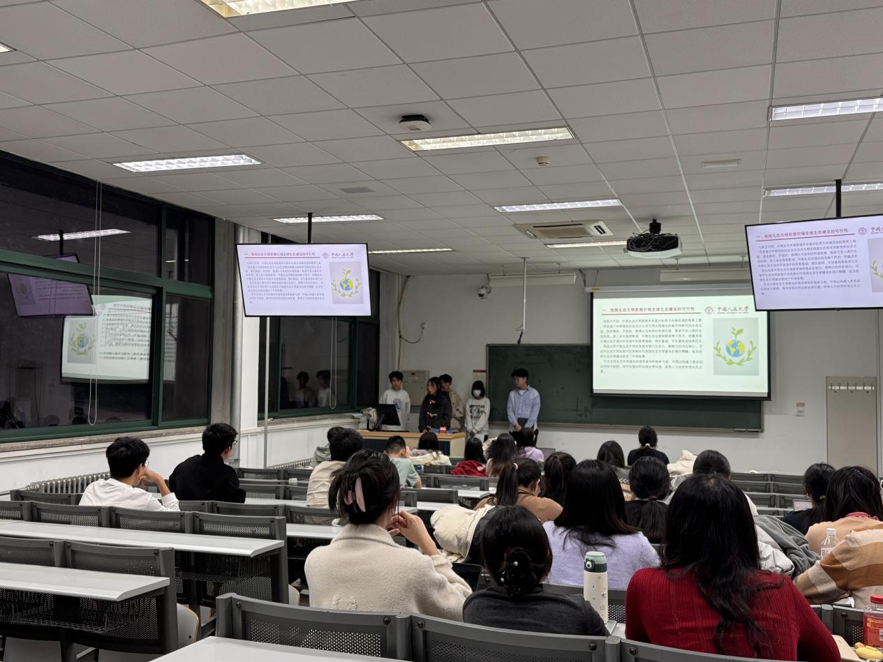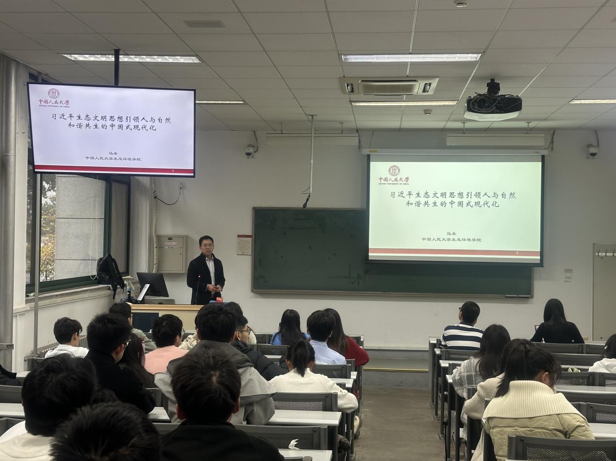 11月13日下午,生态环境公司党校第2期积极分子培训班组织学员开展了第二次集中学习。公司专任教师党支部书记、生态与环境经济学系主任马本副教授以《习近平生态文明思想引领人与自然和谐共生的中国式现代化》为题,围绕人与自然和谐共生的现代化和习近平生态文明思想引领两大方面带领学员们进行了系统学习。接着,学员们以“结合党的二十大精神和党的二十届三中全会精神,以当代人大环境青年学子如何践行习近平生态文明思想”为主题进行小组展示与讨论。