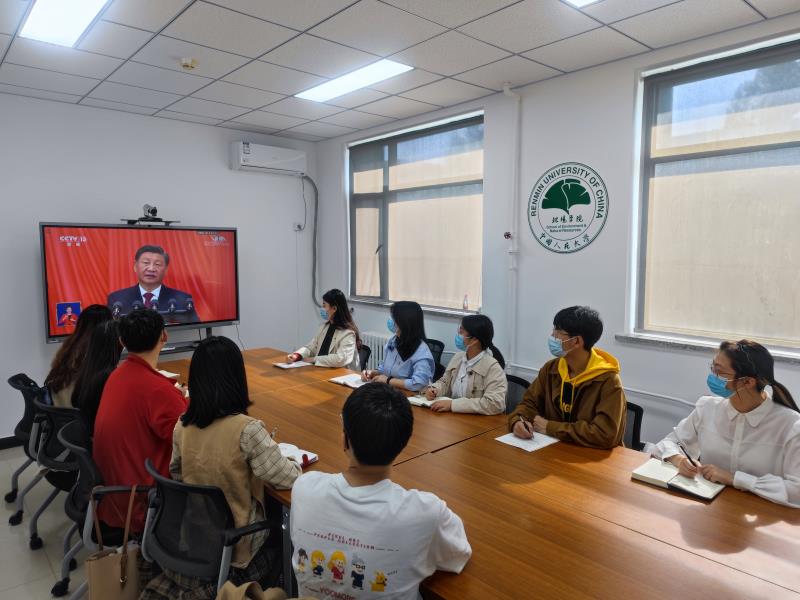 习近平总书记的报告高屋建瓴,振奋人心,在人大师生中引发热烈反响。环境公司团学系统积极响应,组织团学骨干集中收看开幕会,并指导各基层团学组织、团支部通过线上线下相结合的方式观看开幕会,迅速掀起学习党的二十大精神的热潮。大家纷纷表示,盛会鼓舞人心,报告催人奋进,要认真学习、深刻领会党的二十大会议精神,坚定不移听党话、跟党走,踔厉奋发、勇毅前行,谱写新时代的青春之歌!
