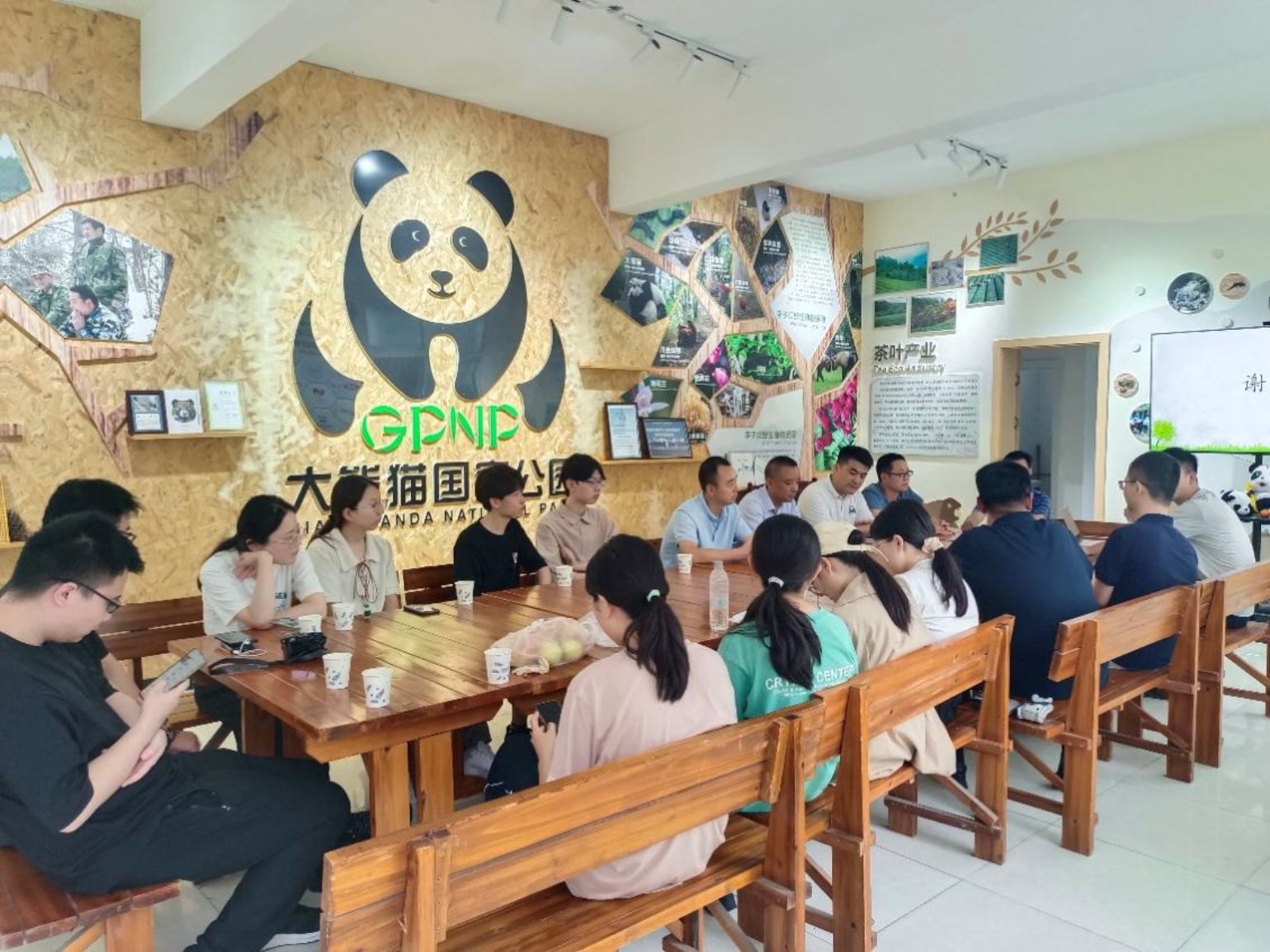 之后,调研团来到白马河保护站进行参观座谈。首先,工作人员带领调研团成员参观了白马人与大熊猫展厅,调研团成员进一步了解了白马藏族人民与大熊猫之间的关联。随后,调研团与保护站工作人员开展座谈,调研团成员与工作人员就大熊猫保护、历史文化传承创新等问题开展互动。通过本次座谈会,调研团成员进一步加深了对国家公园建立对当地社区影响的认识,同时感受到让国家公园带来的收益惠及当地所有百姓是任重道远的过程。