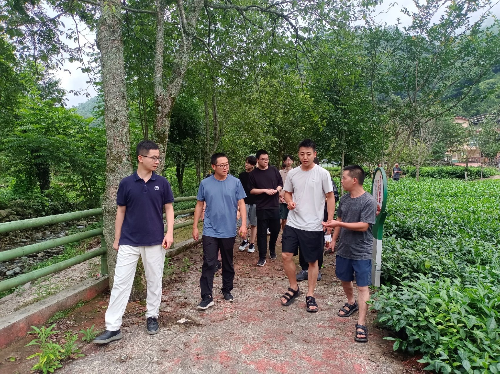 下午,调研团队前往龙池。近年来,在国家政策的支持下,为发展乡村的旅游业,实现乡村振兴,龙池依托优美的生态环境,茶产业、乡村旅游成为支柱产业。龙池区域农舍俨然、村容整洁、物阜民丰、安居乐业。团队在此走进茶山、眺望远景,感受到群山苍翠、碧水连天的自然之美。
