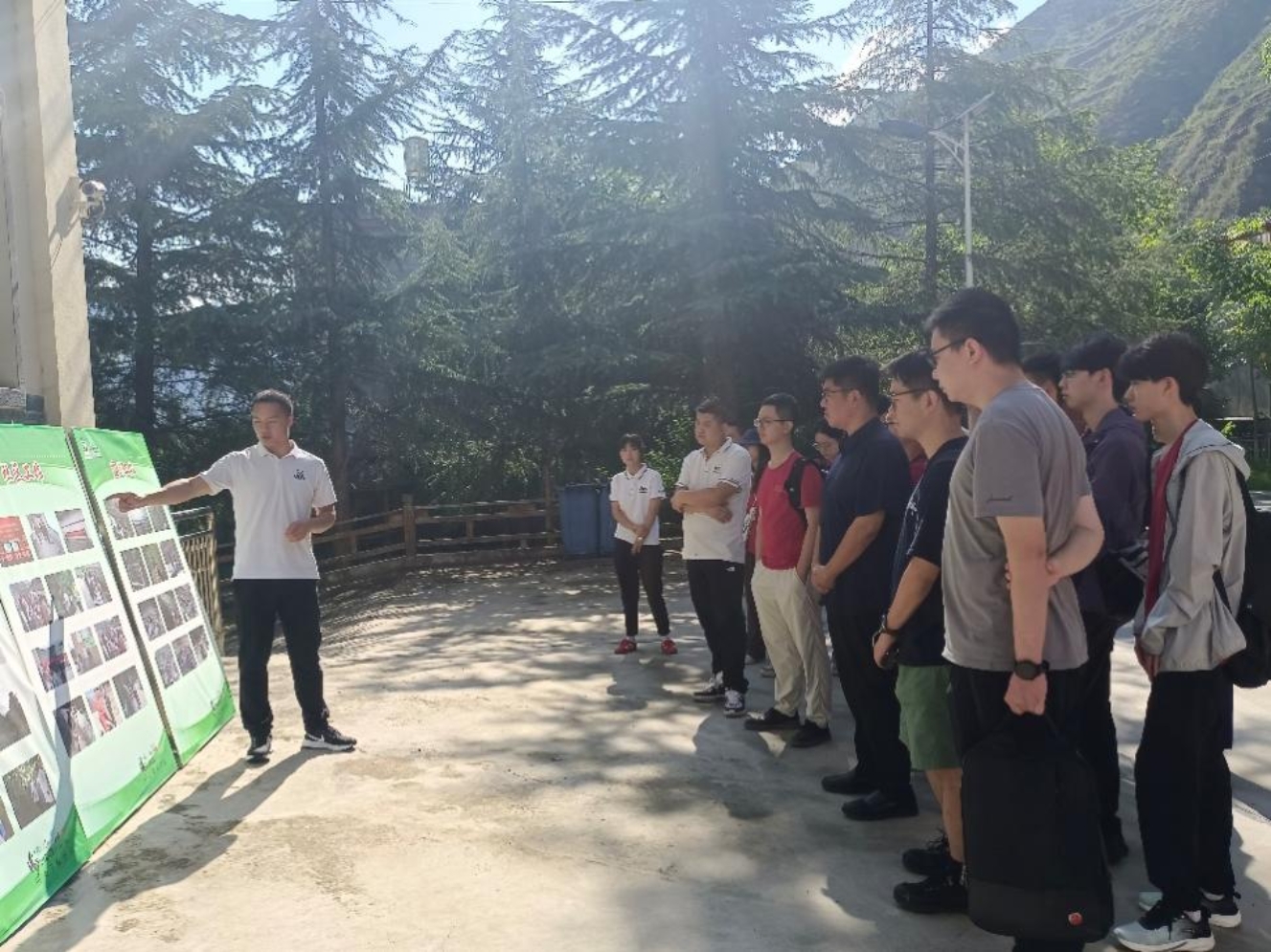 7月19日上午,调研团来到位于碧口镇的大熊猫保护站。碧口镇地处文县东南部,南邻四川青川县,距文县县城81千米,区域总面积208.17平方千米。碧口保护站的主要任务是保护大熊猫、珙桐等多种珍稀濒危野生动植物及其赖以生存的自然生态环境和生物多样性。多年来,碧口保护站在管理局的坚强领导下,认真开展大熊猫及其栖息地保护、巡护监测、森林防灭火、社区共管、大熊猫国家公园建设体制试点等工作,取得了卓越成效。团队成员在这里不仅了解了大熊猫的保护情况,还亲身体验了碧口生态廊道的自然之美,为后续的生态保护工作提供了宝贵的实地资料。碧口镇保护站外建设了碧口生态廊道,拥有原生态的森林和壮丽的瀑布景观,团队成员在此体验了原始大自然之美。