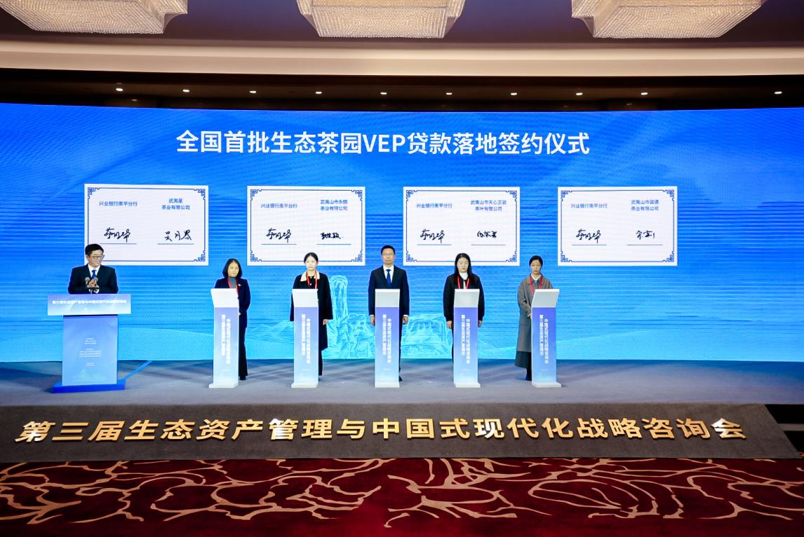 在《南平市生态茶园VEP核算成果报告》发布环节,庞军经理介绍了特定地域单元生态产品价值(VEP)核算的核心理念、技术路线、突出优势及两大类型,发布了南平市生态茶园VEP案例“1+1+1”系列成果体系,指出本研究成果在核算方法、生态化改造指引、全流程开发模式的推广应用前景,提出打造包含绿色金融产品、优惠政策设计、“政府—市场耦合路径”的多元应用体系,强调VEP政策体系应形成多层级政府协同保障,明确政府部门和金融机构的角色和职能。本次战略咨询会首次发布这一报告,聚焦南平市优势特色的茶产业,基于VEP方法,核算生态茶园的市场化溢价,探索金融助力生态产业化和产业生态化的有效路径。
