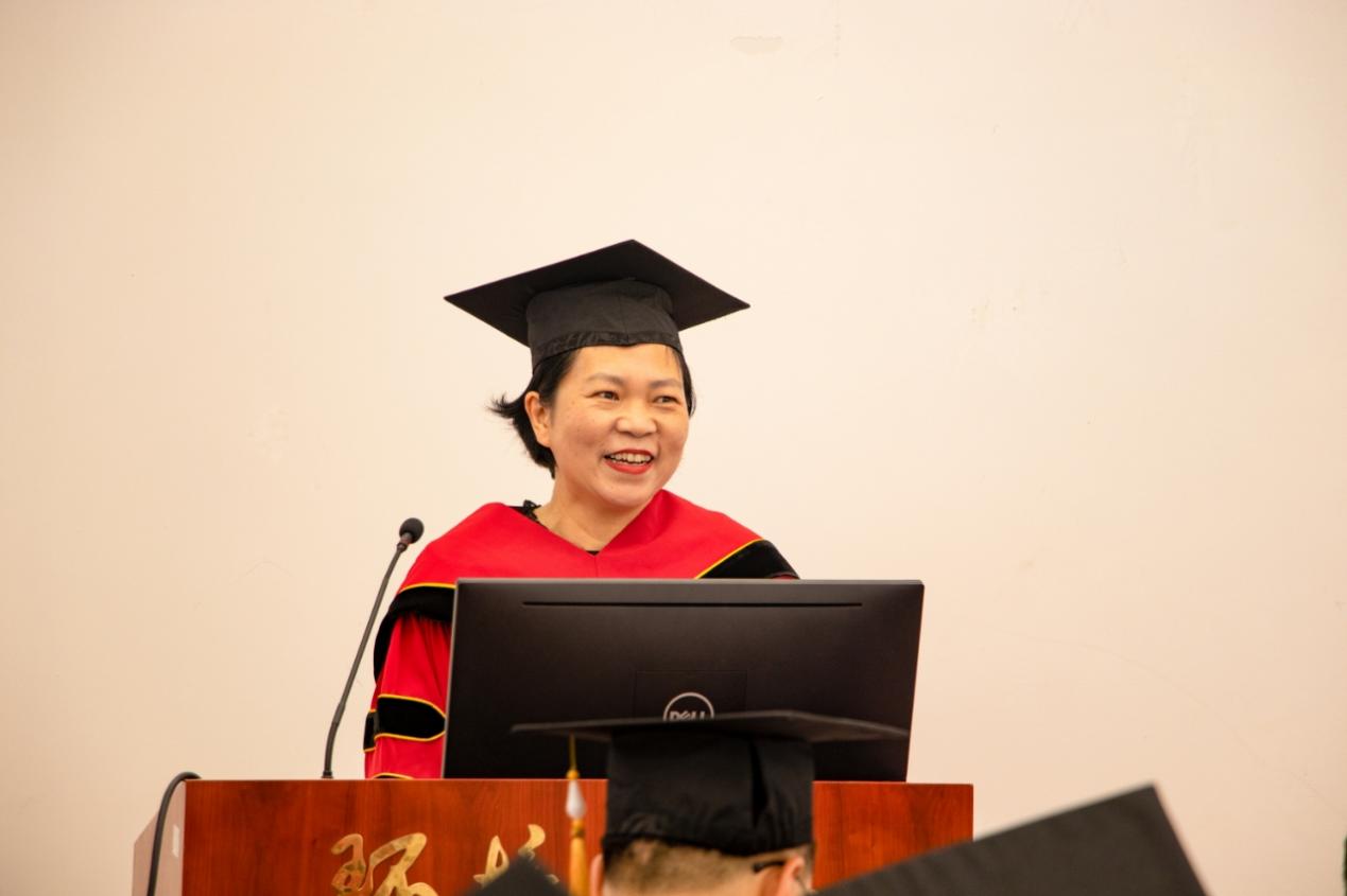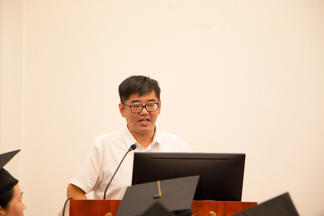 导师代表李岩教授向各位同学送上了最真挚的祝福,为各位同学在自己的工作之余,实现自己学识和学位的提升,兼顾工作、家庭和学业三方而感到自豪和高兴;同时也叮嘱各位同学不要忘记初心,在纷繁复杂的世界能够坚守底线,以解决社会问题为己任,做强国先锋、复兴栋梁。李岩教授最后送给同学们一句话:路虽远,行则将至;事虽难,做则必成。
