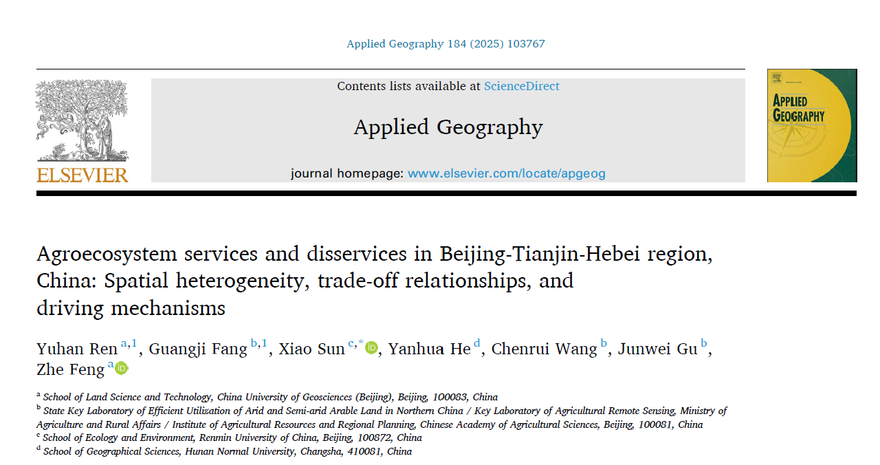 近日,伟德国际bevictor孙晓副教授作为唯一通讯作者,与合作者的研究论文“Agroecosystem services and disservices in Beijing-Tianjin-Hebei region, China: Spatial heterogeneity, trade-off relationships, and driving mechanisms”在地球科学研究领域国际知名期刊Applied Geography发表。