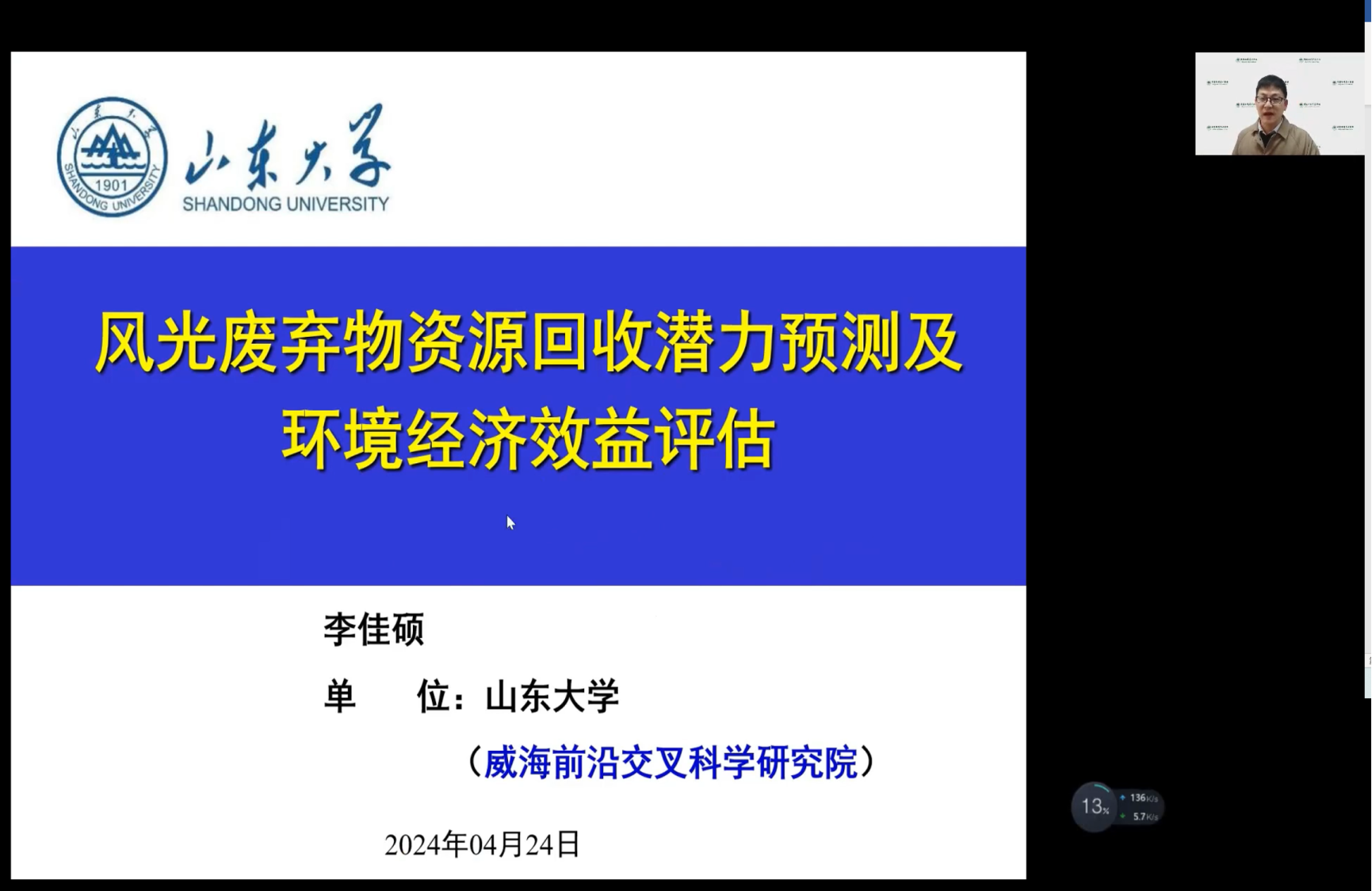2024年4月24日,伟德国际bevictor主办的“明德环境学术讲坛”第三十二讲以线上线下结合的方式成功举办。本次讲坛邀请山东大学威海前沿交叉科学研究院教授、国家自然科学基金委优青获得者李佳硕教授作了题为“风光废弃物资源回收潜力预测及环境经济效益评估”的学术报告。伟德国际bevictor经理庞军教授首先致辞,代表公司对李佳硕教授为公司师生作学术报告表示诚挚感谢,并对参会师生在交流学习过程中能够有所收获提出了殷切期望。会议由伟德国际bevictor昌敦虎副教授主持。