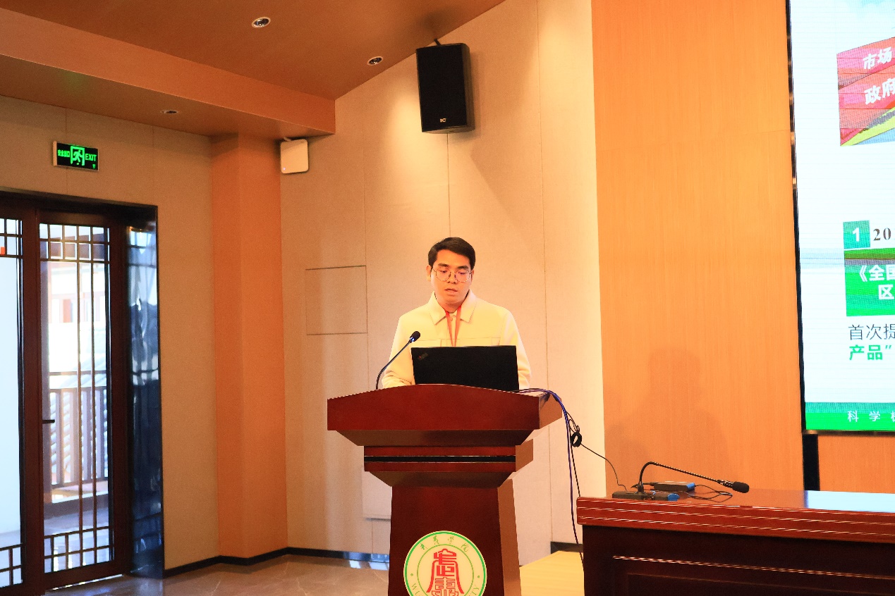 南京农业大学于梦林同学汇报了以长三角地区为例的基于横向碳补偿的碳汇生态产品价值实现路径,通过构建区域间横向碳补偿框架,利用CASA模型、IPCC系数法、DEA模型等方法,核算长三角地区2020年碳收支、碳排放效率与碳汇效率,建立仅从碳收支两端考虑碳补偿的基础方案、优先考虑碳排放作为非期望产出的区域碳排放效率的经济优先方案、优先考虑生态系统碳汇能力的生态优先方案、同时考虑碳排放效率与碳汇效率协调方案四种碳补偿方案。他研究发现,长三角地区生态系统的碳承载压力大,碳排放高值区主要集中于沿江的皖中及苏南城市以及上海市,碳汇高值区主要分布在皖南、浙南等上山区丘陵地带以及苏中农田集中片区;长三角地区高碳排放效率城市主要为上海市及周边经济、产业技术发达城市,高碳汇效率城市主要为浙南的丽水市以及江苏省中部城市的盐城市等地;长三角地区的碳付费地区主要集中于上海市、苏州市等经济、人口密集的碳排放区,碳受偿地区主要为丽水市、黄山市等碳汇生态产品集中供给区。他认为,建立以碳收支率为核心的横向碳补偿机制能够促进碳汇生态产品供需平衡,实现碳汇生态产品“保护者受益、使用者付费”的利益导向。