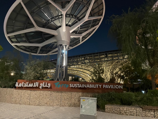 相较于蓝区的专业与严谨,绿区是更加开放兼容的地方,可以看见许多家长推着还在婴儿车里的小朋友观光游览。因此,绿区的许多活动会更多地考虑教育性及可观赏性的结合,但由于我们只有一个下午的活动时间,所以只能在众多场馆中进行选择。最终,我们在可持续馆(Sustainability Pavilion)的游览中结束了这次出访,为COP之行画上了圆满的句号。