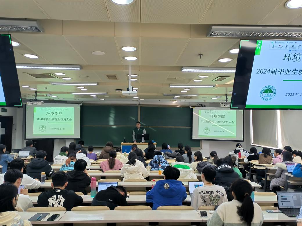 12月1日下午,环境公司2024届毕业生就业动员大会在明徳法学楼501教室举行。公司党委书记贾铁英、党委副书记于媛、就业辅导员王翔宇以及全体2024届毕业生参加会议。会议由王翔宇老师主持。