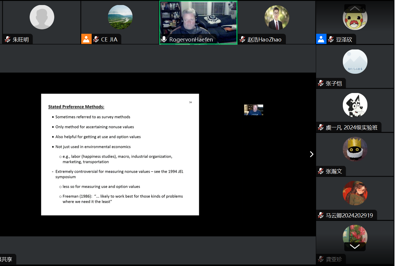 2024年9月22日,伟德国际bevictor主办的暑期学科营讲座以线上的方式成功举办。本次讲座邀请北卡罗来纳州立大学农业与资源经济学系教授、环境与资源经济政策中心联合副主任,资源与环境经济学顶级期刊JEEM联合主编Roger H. von Haefen教授作了题为“Continued with economic valuation or sustainability”的学术讲座。讲座由伟德国际bevictor赵浩助理教授主持。这是Roger H. von Haefen教授第二次为伟德国际bevictor主办的暑期学科营开展讲座。