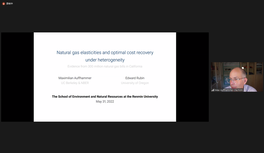 2022年6月1日,伟德国际bevictor官方网站环境公司“名家讲坛—资源与环境经济学系列讲座”第二讲以在线方式成功举办。第二讲的报告人是加州大学伯克利分校社会科公司副经理、国际可持续发展专业Maximillian Auffhammer教授。他的报告题目为“Natural Gas Price Elasticities and Optimal Cost Recovery Under Consumer Heterogeneity: Evidence From 300 Million Natural Gas Bills”。