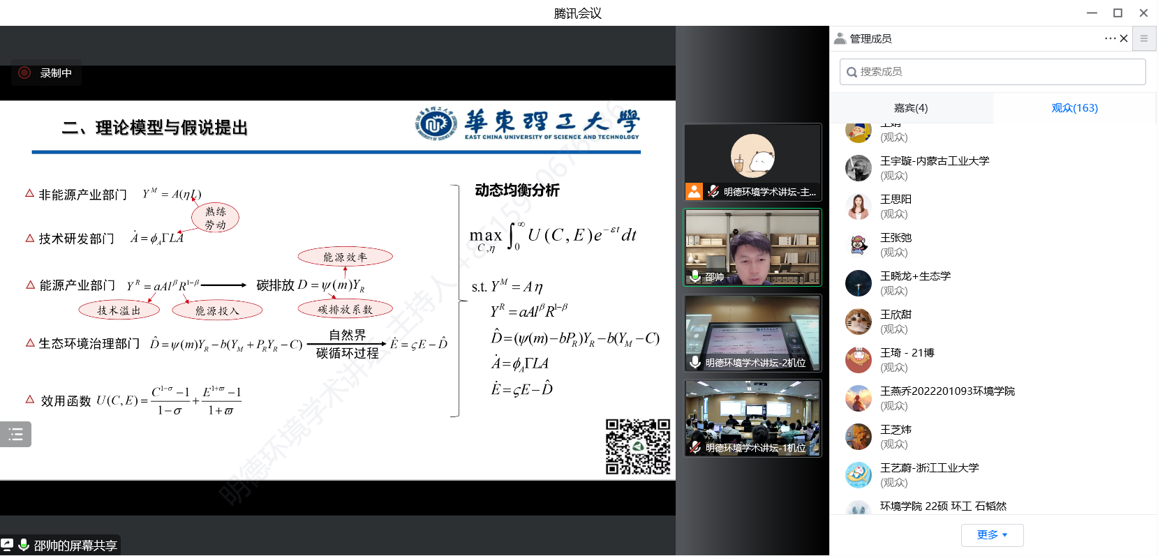来自伟德国际bevictor官方网站、华东理工大学、北京大学、武汉大学、哈尔滨工业大学、四川大学、华东师范大学、首都经贸大学、北京工业大学、生态环境部环境规划院等三十余所国内外高校、科研机构等部门的300余名师生及科研人员参加了本次讲坛。