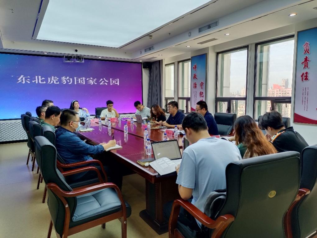 东北虎豹国家公园是我国东北虎、东北豹种群数量最多、活动最频繁、最重要的定居和繁育区域,跨越吉林、黑龙江两省,总面积140.65万公顷,涉及多个林业局、林场、市、县、乡镇、村屯、自然保护区等。公园内植被类型多样,生态结构相对完整,是温带森林生态系统的典型代表。8月25日上午,调研团一行来到东北虎豹国家公园管理局座谈交流,管理局办公室主任王佰平介绍了当地生态保护现状,指出公园内虎豹种群持续增长,生态保护成效显著。执法处处长李子木、资产保护处副处长聂冠、资产保护干部孔维尧以及资产保护处干部纪建宇参加了此次座谈,并与调研团进行了深入讨论。通过座谈,调研团详细了解了东北虎豹国家公园管理体制、国家公园内自然资源资产管理的基本手段与主要模式、国家公园内保护与发展的平衡问题、天地空一体化监测站点与跨境合作机制的建设情况。作为我国首个中央直属的国家公园管理机构,虎豹局未来将继续探索野生动物损害补偿机制,积极进行跨境合作形成监测数据共享,完善自然资源资产管理的后期配套措施,从重保护轻民生转向保护与民生相协调,进而实现人与自然和谐共生。