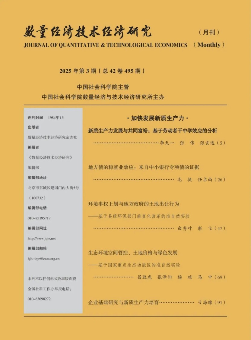 《数量经济技术经济研究》是经济学和管理学权威期刊,AMI权威期刊,国家社科基金首批资助期刊,国家自然科学基金认定“A类期刊”,2024年复合影响因子为16.829。