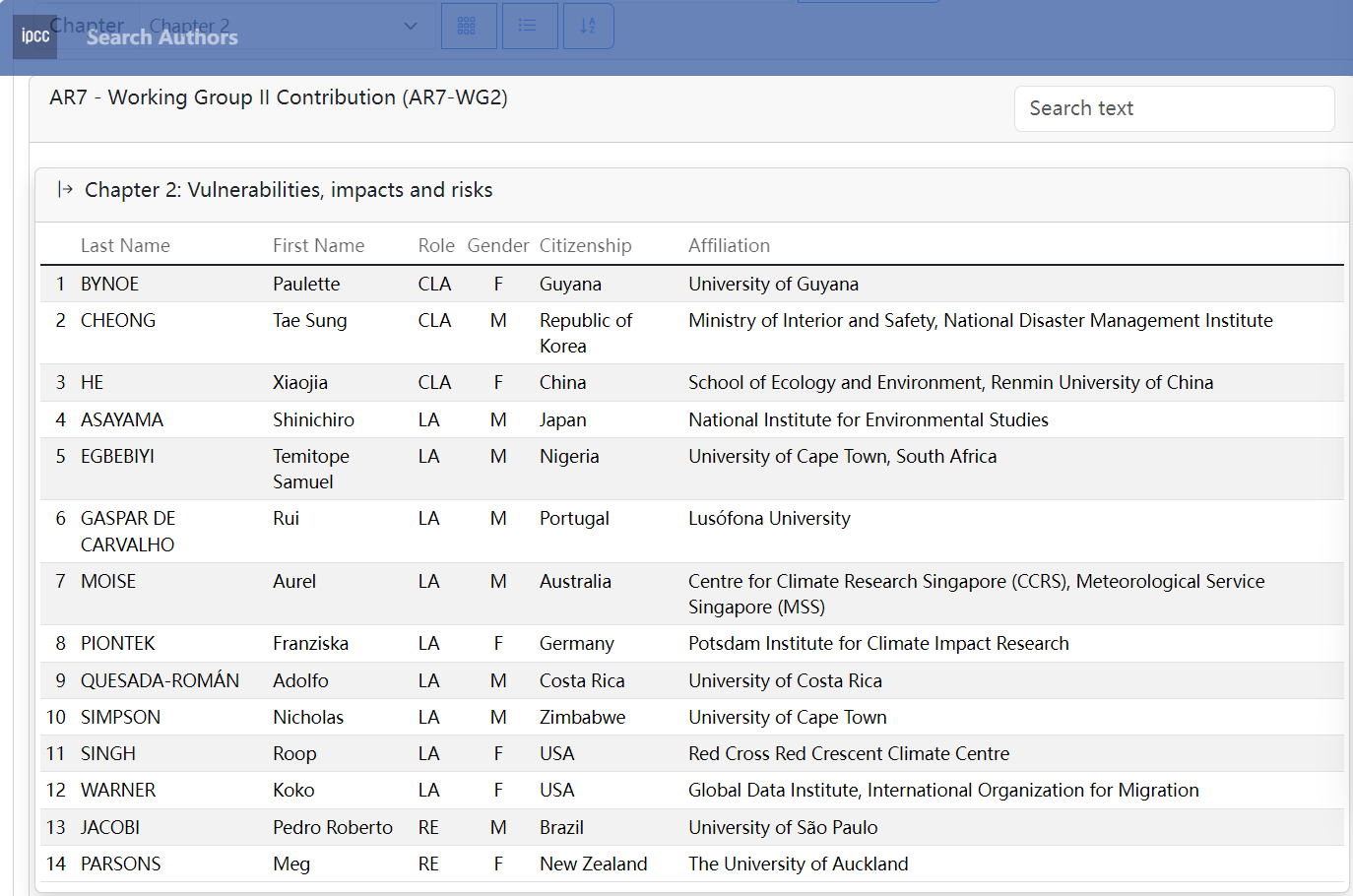 IPCC AR7完整作者名单见:https://apps.ipcc.ch/report/authors/
