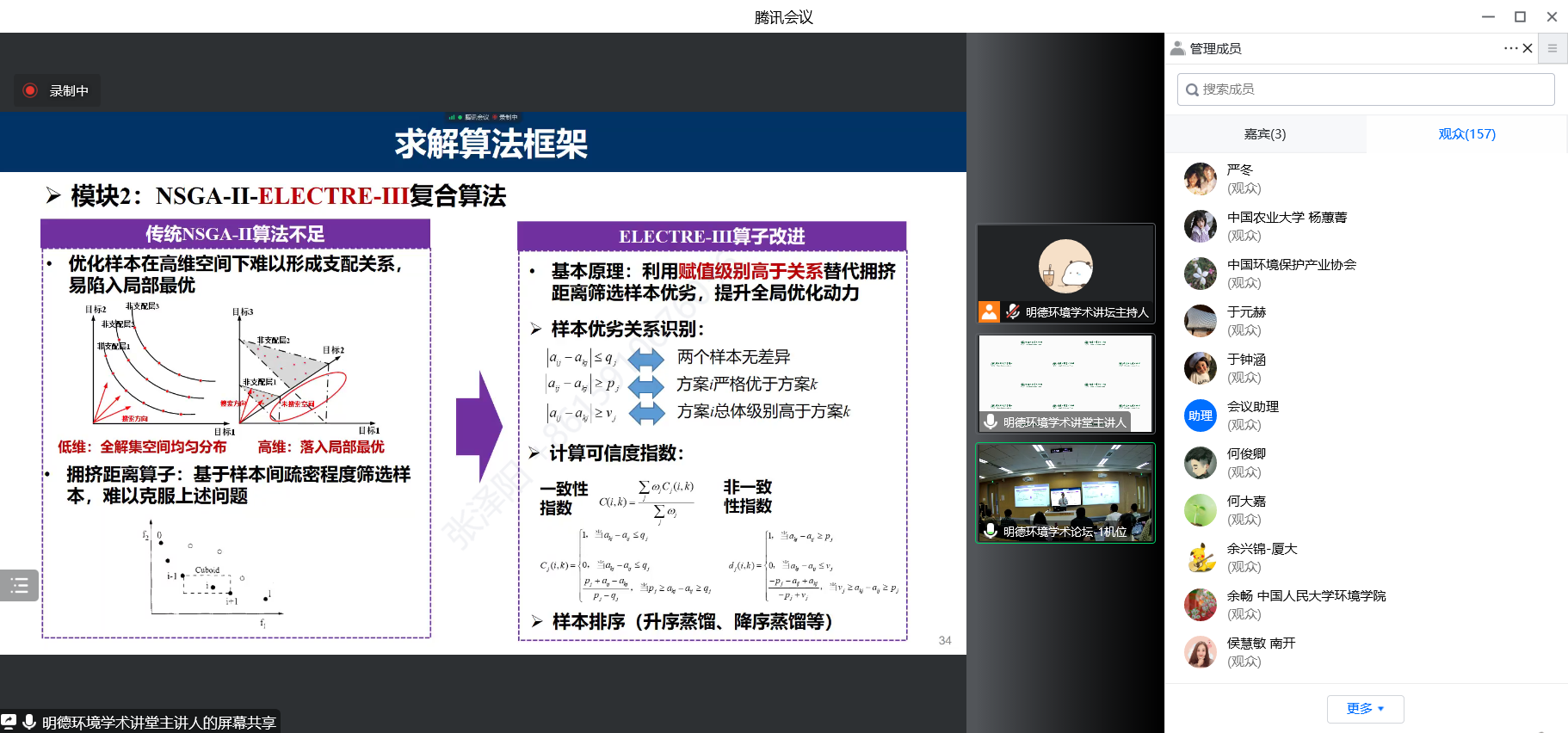 来自伟德国际bevictor官方网站、清华大学、中国科公司大学、中国农业大学、南京大学、南开大学、厦门大学、西南财经大学、北京工业大学、中国环境科学研究院、生态环境部环境规划院、中国环境监测总站、中国环境保护产业协会等四十余所国内外高校、科研机构等部门的200余名师生及科研人员参加了本次讲坛。