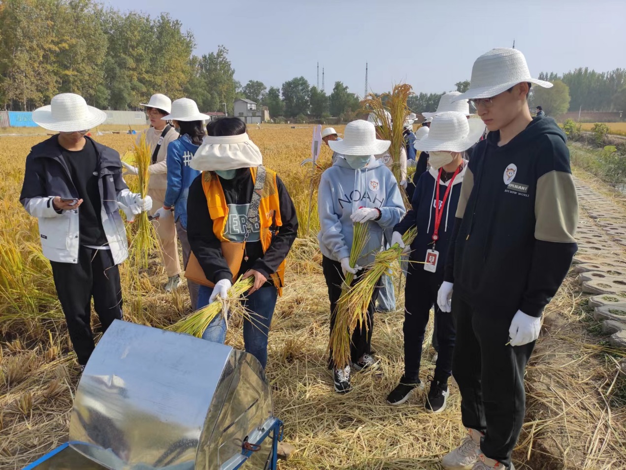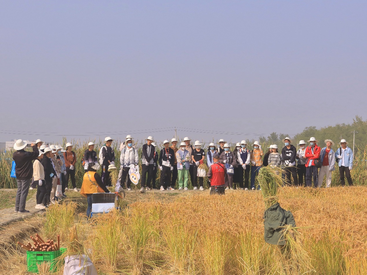 下午,全体师生来到京西稻保护性种植基地。同学们学习了水稻生物多样性保护的策略、生态环境要素对京西稻种植变迁的影响,了解了京西稻农业遗产与生态环境、经济社会和地区文化之间的关系。在京西稻博物馆,同学们在农产品加工的全过程中认识到农业废弃物循环利用的方式及其经济意义。