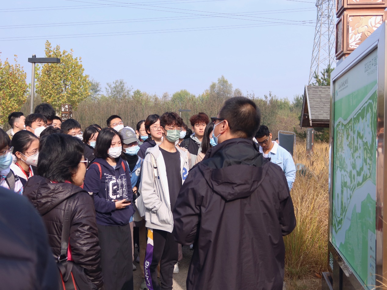 师生一行首先抵达翠湖国家城市湿地公园。指导老师一边为大家讲解湿地的相关知识,一边提出思考题,让同学们带着问题参观。不少同学是第一次亲身走进湿地,对园区自然景观充满了好奇,提出了关于湿地环境质量、生物多样性和生态产品价值实现的问题。指导老师对同学们提出的问题进行了耐心解答,并引导同学们将亲眼所见与课堂内容结合,把知识带出课堂、将体验融进知识。