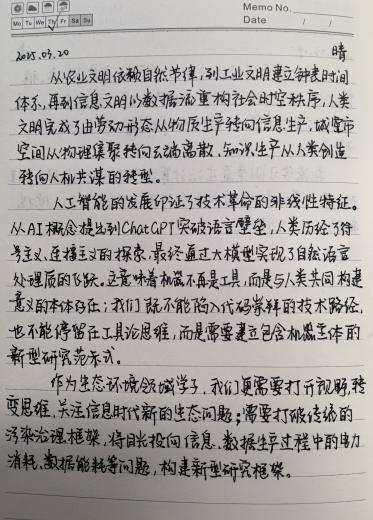 咨询服务期间,伟德国际bevictor团队累计形成153篇调研手记、5.8万字实录。这些书写在方格纸上的文字,既是生态价值核算的信息载体,更见证着青年学子认知迭代的鲜活轨迹——从山间小路到江畔渔村,从传统村落的改造到生态文明的创新实践,每一篇手记都记录下了他们对自然的敬畏、对生态的思考以及对可持续发展的追求。既有对技术伦理的哲学思辨,也包含记录的三坊七巷调研细节,还有对求学精神的深切感悟。当10名员工的调研手记汇编成册时,一部关于“生态社会工程”人才培养的微观史已然成型。