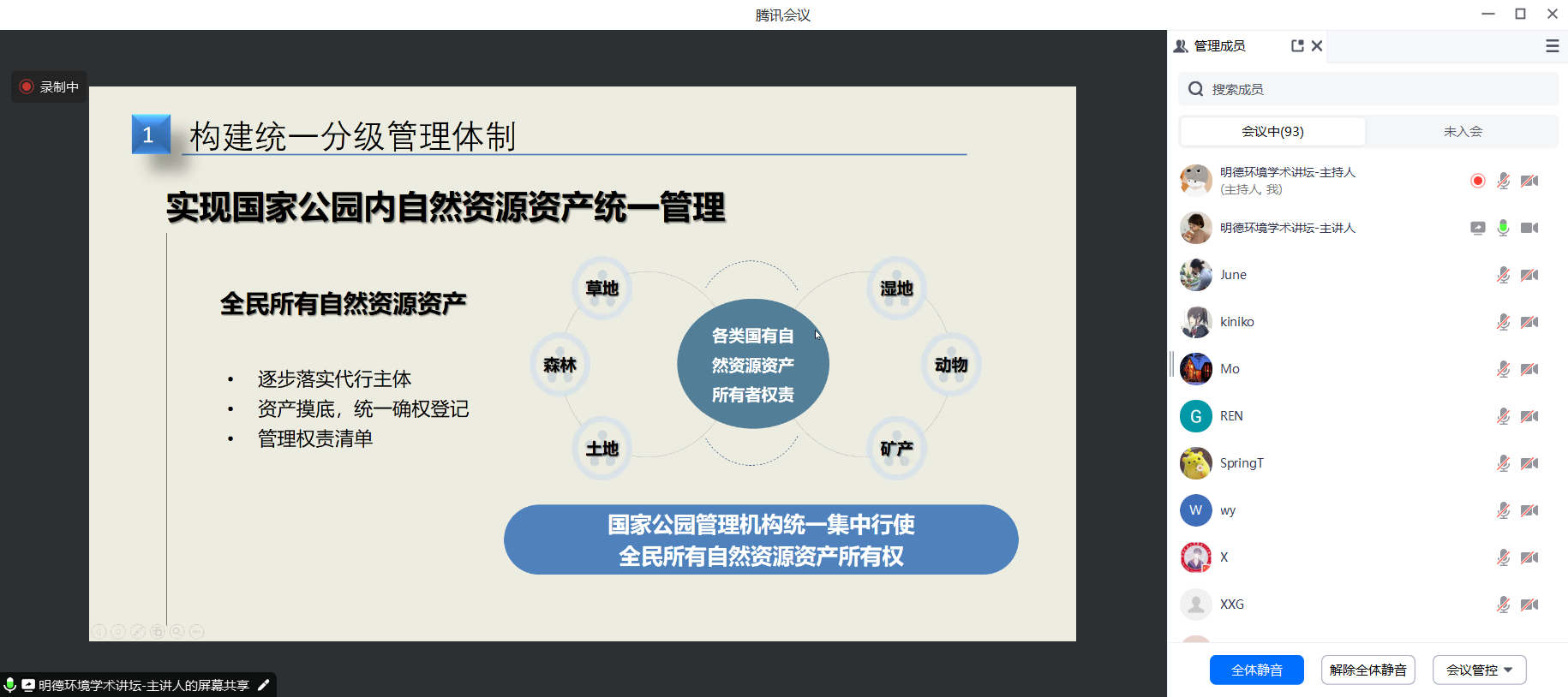 来自伟德国际bevictor官方网站、国家公园研究院、武汉大学、山东大学、北京师范大学、中央民族大学、中国海洋大学、北京林业大学、中国地质大学、中国传媒大学、郑州大学、云南大学、南京林业大学、贵州财经大学、中国社会科公司、中国环境科学研究院、中国林业科学研究院、四川省林业和草原调查规划院、重庆市委党校、上饶市委党校、第一财经、中国环境报等三十余所国内外高校与科研媒体机构的200余名师生及科研人员参加了本次讲坛。