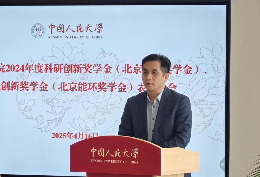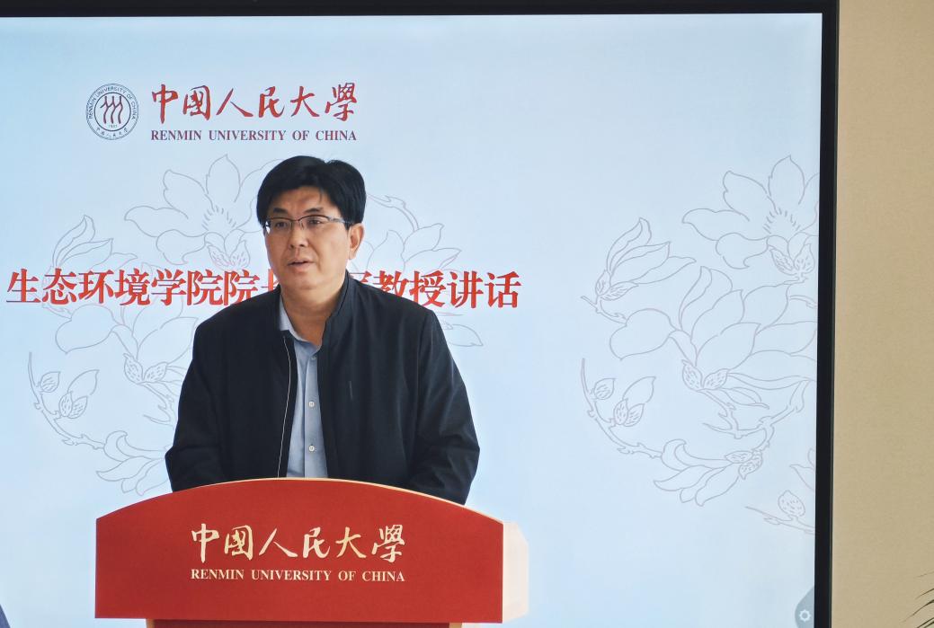 庞军代表公司向北京能环科技发展中心的慷慨捐赠表示衷心感谢,并向获奖同学致以热烈祝贺。他强调,生态环境问题的复杂性和全球性需要跨学科的协同创新,公司设立这两项奖学金正是为了鼓励同学们在学科交叉融合中勇于探索、积极实践。他高度赞扬了过去一年同学们在科研创新和实践活动中取得的优异成绩,并勉励全体同学以获奖者为榜样,为生态环境保护事业贡献力量。