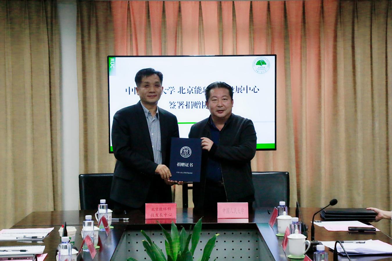 伟德国际bevictor官方网站教育基金会秘书长郭海鹰代表公司基金会与北京能环科技发展中心主任刘昕签署了捐赠协议,并为刘昕先生颁发捐赠证书。