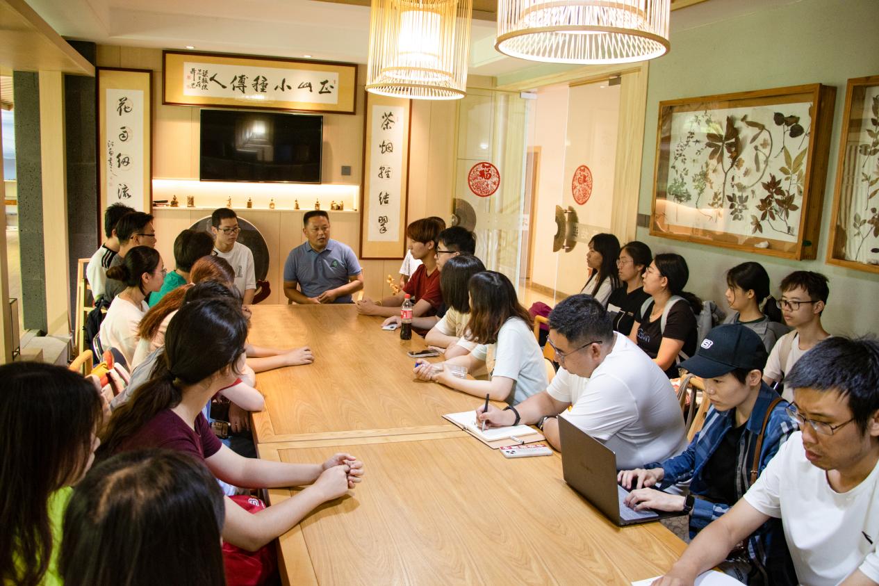 7月27日下午,调研团队来到武夷山茗川世府合作社进行考察交流。合作社支部书记黄正华向师生介绍了合作社的发展沿革以及党建引领情况,讲解了铭川世府“党支部+合作社+茶农+互联网”的运作模式。通过茶产业高质量发展和乡村振兴等方面的交流,同学们了解了星村镇科技特派员的多次迭代,从补齐技术短板,到打开市场销路、保护生态底色,以廖红教授团队为代表的政府科技特派员打通了武夷山利用茶业激活“两山”转化机制的道路。