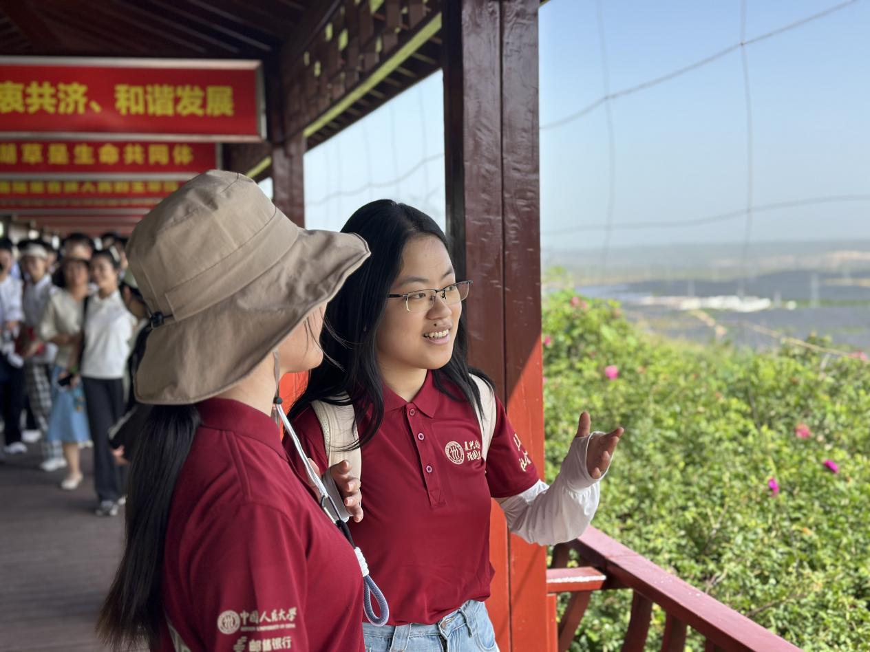 实践团前往内蒙古鄂尔多斯市伊金霍洛旗苏泊罕草原调研生态旅游发展现状,前往红庆河镇调研珠兰敖包村风光储一体化项目,围绕生物多样性保护、自然资源利用等进行深入交流与学习。