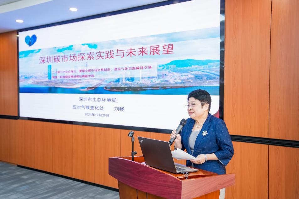 深圳市生态环境局应对气候变化处副处长、二级调研员刘畅做《深圳碳市场探索实践与未来展望》主题演讲,介绍了深圳碳市场的探索实践、存在问题和未来展望。刘处长表示,作为国内首个碳市场,深圳碳市场目前已基本建成制度健全、主体多元、交易规范、创新发展的试点碳市场,在碳交易、碳普惠和碳金融方面都取得了一定的成效。但目前在市场覆盖面、市场定位、市场培育、数字管理能力、管理平台搭建和碳普惠低碳场景中仍存在一定问题。刘处长强调,未来深圳将深化发展深圳碳交易市场,强化碳市场在实现碳达峰碳目标的作用;健全完善碳普惠体系建设,充分发挥促进形成绿色生产生活方式的作用;同时促进碳金融的发展,为全国乃至全球碳金融领域贡献“深圳智慧”和“深圳力量”。