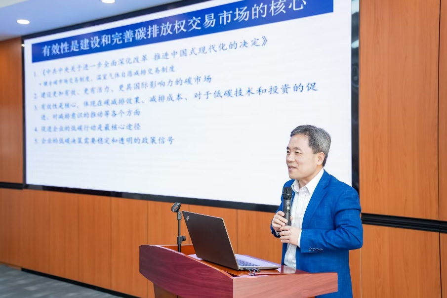 清华大学能源环境经济研究所副所长、研究员段茂盛做《进一步提高政策确定性和市场透明性,建设更加有效碳市场》主题演讲,强调有效性是建设和完善碳排放权交易市场的核心,体现在碳减排效果、减排成本、对低碳技术和投资的促进、对减排意识的推动等方面,促进企业的低碳行动是最核心途径,企业的低碳决策需要稳定和透明的政策信号。建设有效的碳市场需要更有确定性的政策,其测度体现在相关政策在企业决策期前明确、在一个履约期内保持不变或政策变动规则清晰、规则短期稳定和长期变动可预测等方面。还提到要进一步提高市场规则的确定性,包括配额总量、分配的时间和方式、有效期规则、存储、市场调节及市场发展路线图等,以及加强全国碳市场的透明性,公开排放量、配额交易、履约、监管、处罚等信息。