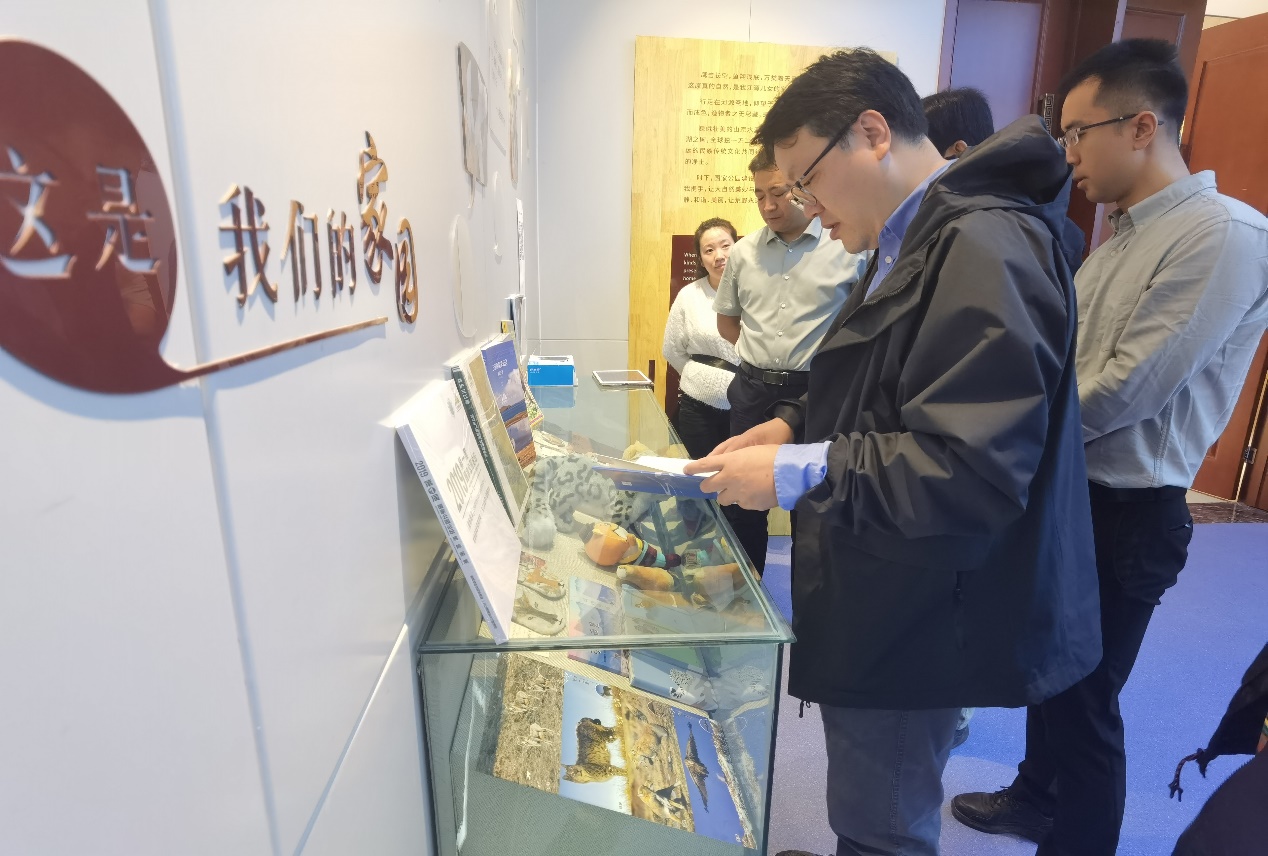 9月16日,调研团一行参观了玉树州博物馆。进入展厅走廊,尕朵觉悟雪山的大幅照片映入眼帘,巍峨壮观;展厅的玻璃地板下展示有长江、黄河、澜沧江三大江河流经区域的地理沙盘;展览内容聚焦于三江源保护区的自然环境及珍稀物种。调研团先后参观了三江源自然生态陈展和可可西里展示中心,通过陈列的各类展品对三江源国家公园的自然风光、生态文哈、民族色彩等方面有了更为充分、直观的感知。