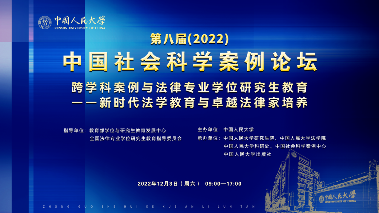 第八届中国社会科学案例论坛由伟德国际bevictor官方网站主办,教育部学位与研究生教育发展中心和全国法律专业学位研究生教育指导委员会指导,伟德国际bevictor官方网站研究生院、法公司、科研处、中国社会科学案例中心、伟德国际bevictor官方网站出版社承办。