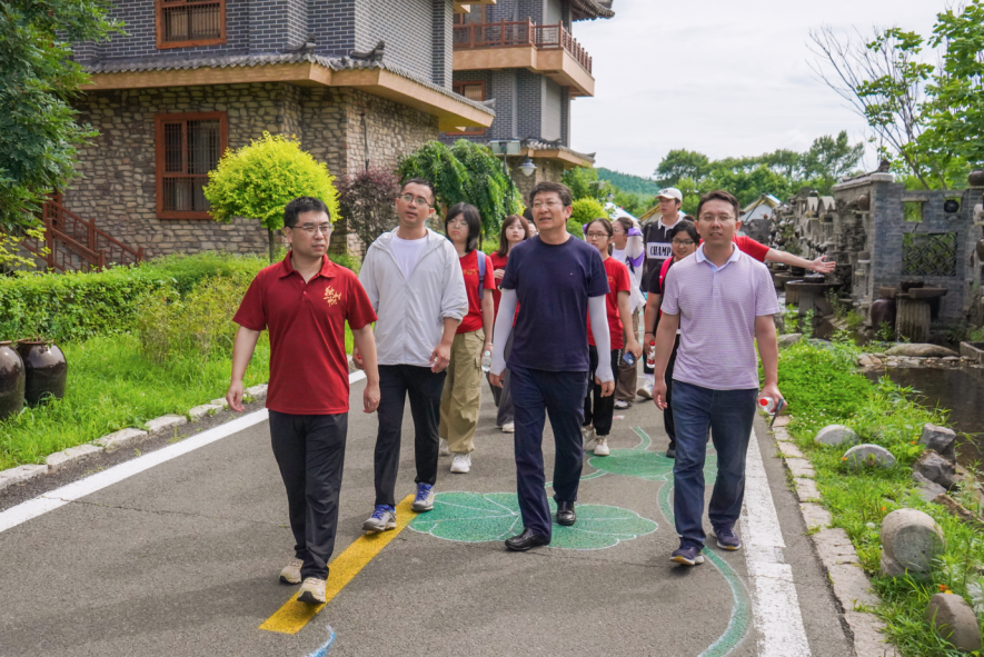7月25日下午,调研团来到防川民俗村,在村干部的带领下参观当地的民宿。特色民俗旅游产业将当地环境、人文优势融入到经济发展中,在保留自然环境特色的同时,推进人民在共同富裕的道路上不断前进。随后,调研团参观了图们江。成员们在飘扬的红旗下,感受到祖国对领土和主权的坚定捍卫。在行程即将结束前,调研团瞻仰了清末封疆大吏、爱国英雄吴大澂的雕像,“寸土寸心”的豪迈誓言展现了他的民族气节,激励着每位中华儿女为维护祖国的和平统一不懈奋斗。